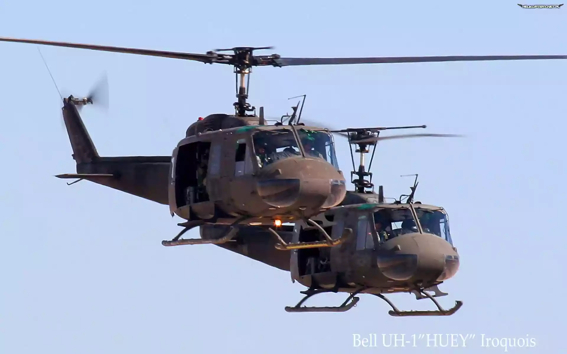 Bell UH-1 Huey Iroquois Grafika, Bell UH-1 Huey Hog Śmigłowiec, Bell UH-1 Iroquois, Żołnierze, Niebo, Chmury, Zachód słońca